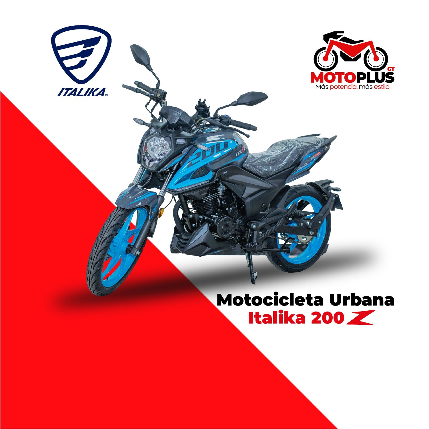 La Italika 200Z Azul ofrece un motor de 200 cc, manejo ágil y frenos seguros, perfecta para quienes buscan una moto práctica y económica para la ciudad. Su estilo deportivo y comodidad la hacen ideal para el uso diario.